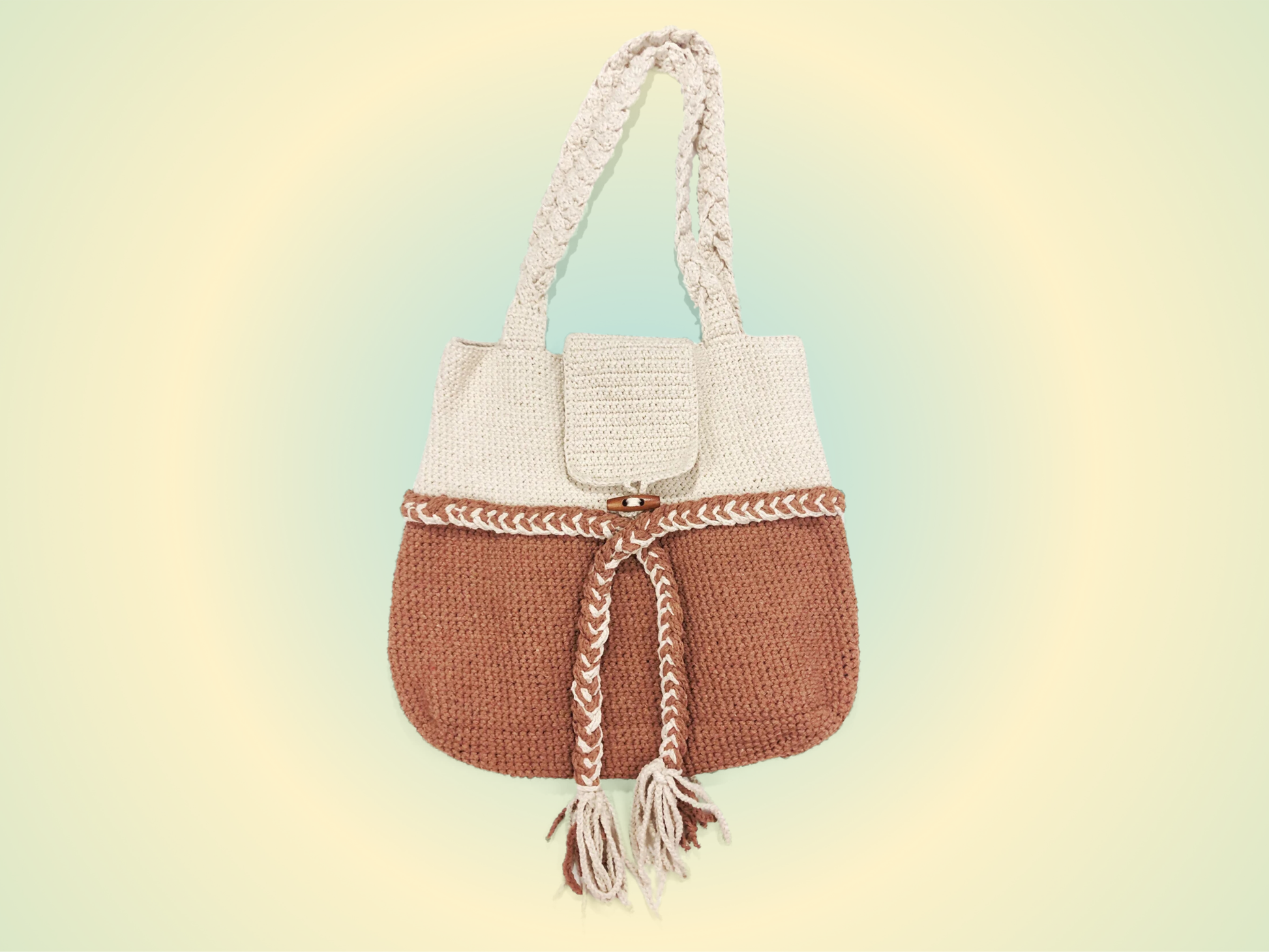 This neutral two-toned bag has plenty of room for day trips and adventures in nature. The braided handle and trim add an extra touch of interesting texture.